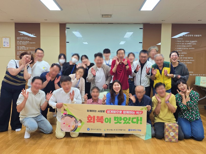 연수구(구청장 이재호)는에 위치한 연수새누리 정신재활시설은 10월 2일, 추석 명절을 맞아 회원들과 함께하는 회복지원 프로그램 「회복이 맛있다!」 를 진행했다. 이번 프로그램은 함께하는 사랑밭 공모사업 ‘삼계탕으로 함께하는 식사’에 선정된 사업으로, 알코올 사용 장애 회복자를 위한 신체·정서 통합 회복 프로그램이다.